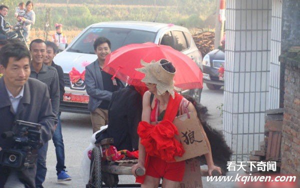 实拍见识下新农村的时尚婚礼吧,色狼的恶心装扮,手拉车接新娘。 (责任编辑:賀筅甡.!)